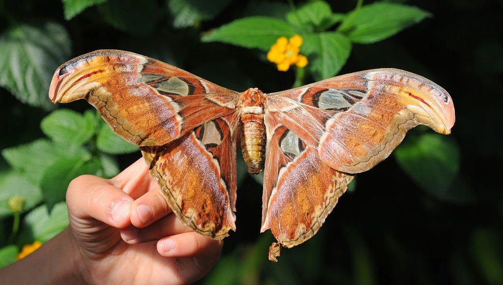 As mariposas atlas são consideradas as maiores mariposas do mundo3 em termos de área de superfície total da asa (para mais de 400 cm²). Sua envergadura também é considerada entre as melhores, de 25–30 cm. As fêmeas são razoavelmente maiores e mais pesadas.